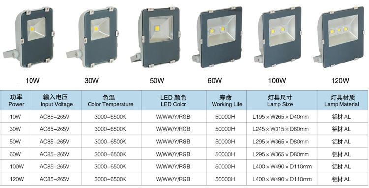 LED投光燈LEDFlood Light,又名LED聚光燈、LED投射燈。LED投光燈通過內(nèi)置微芯片的控制,現(xiàn)有兩類產(chǎn)品,一類采用功率型芯片組合,另一類采用單顆大功率芯片,前者性能較穩(wěn)定,單顆大功率產(chǎn)品結(jié)構(gòu)龐大,適合小范圍的投光照射,后者可以達到很高的功率,可以進行遠距離大面積投光。
